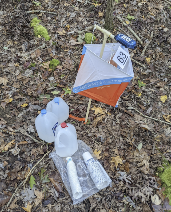 - Please put used cups in the provided trash bag (hard to see, but it's folded in the photo below) - or carry them back to the finish with you.