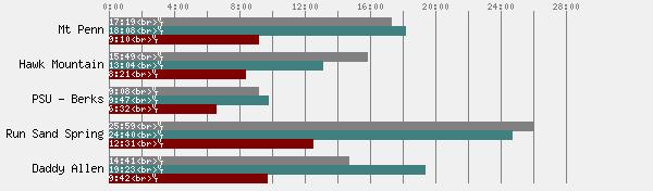 | Mt Penn | Nov 05, 2017 | Orange | 1:26:35 | 8/15 | 5.00 | 130.0 | 13 | 17:19 |