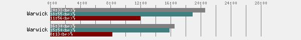 | Warwick | Apr 08, 2018 | Yellow | 42:56 | 14/23 | 2.60 | 0.0 | 8 | 16:30 |